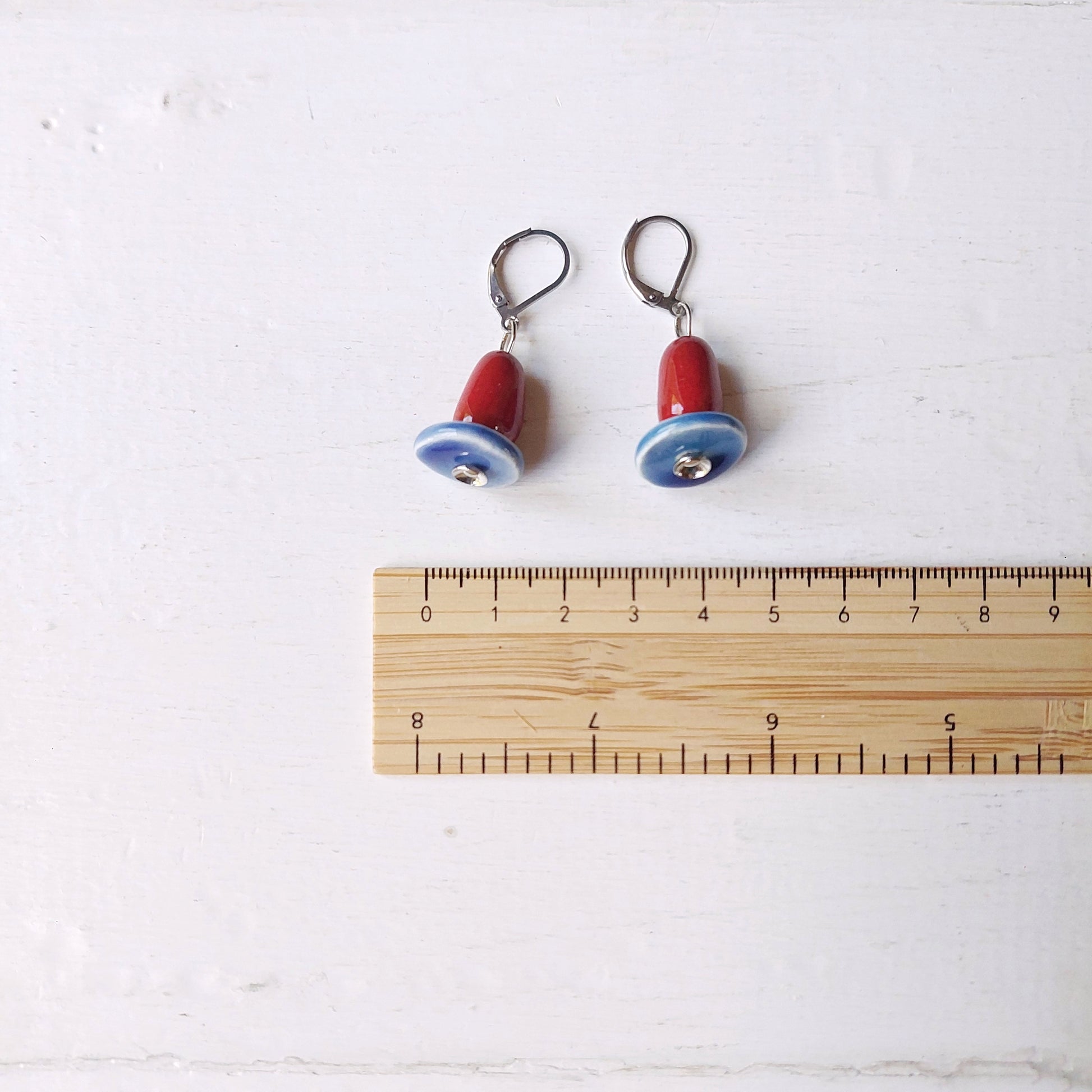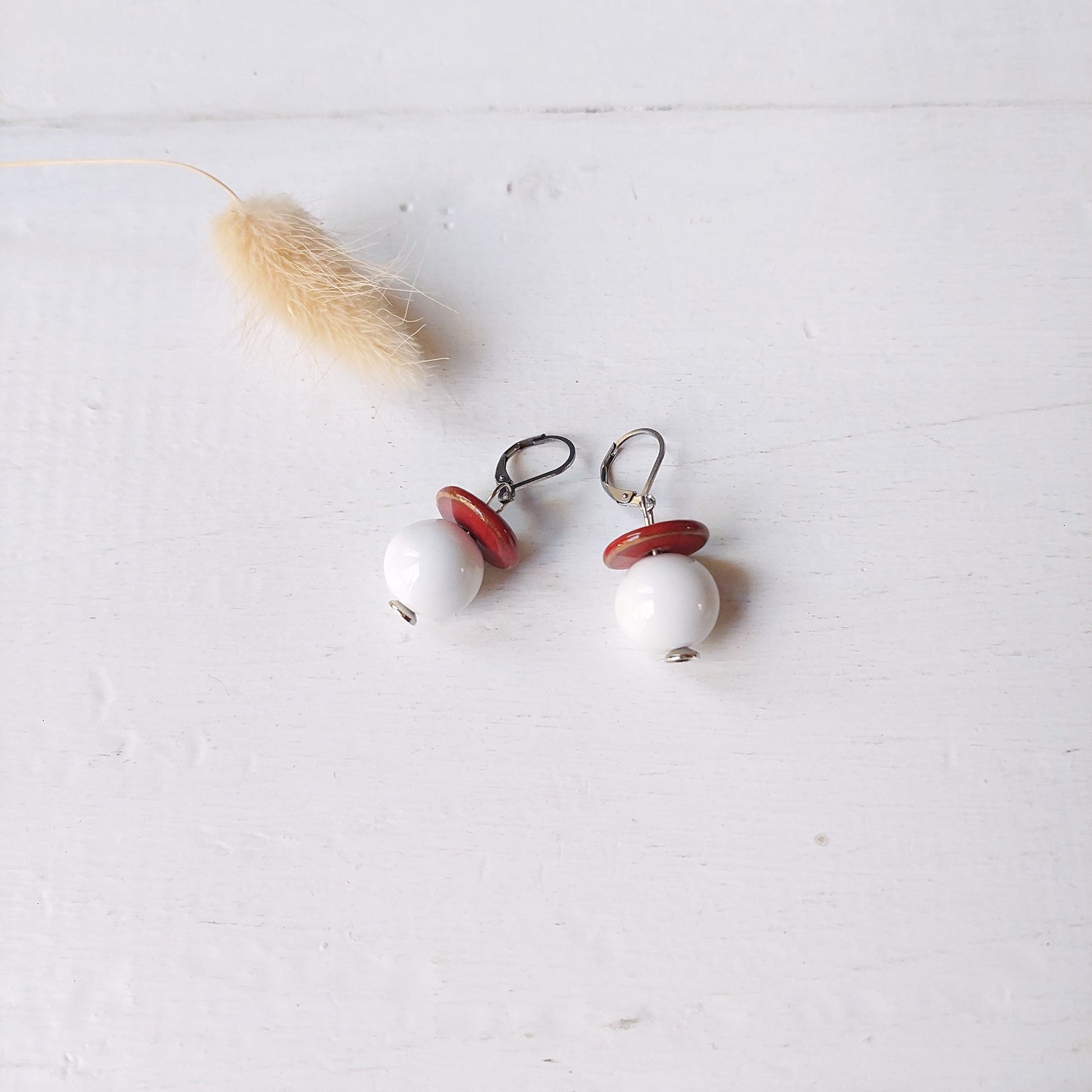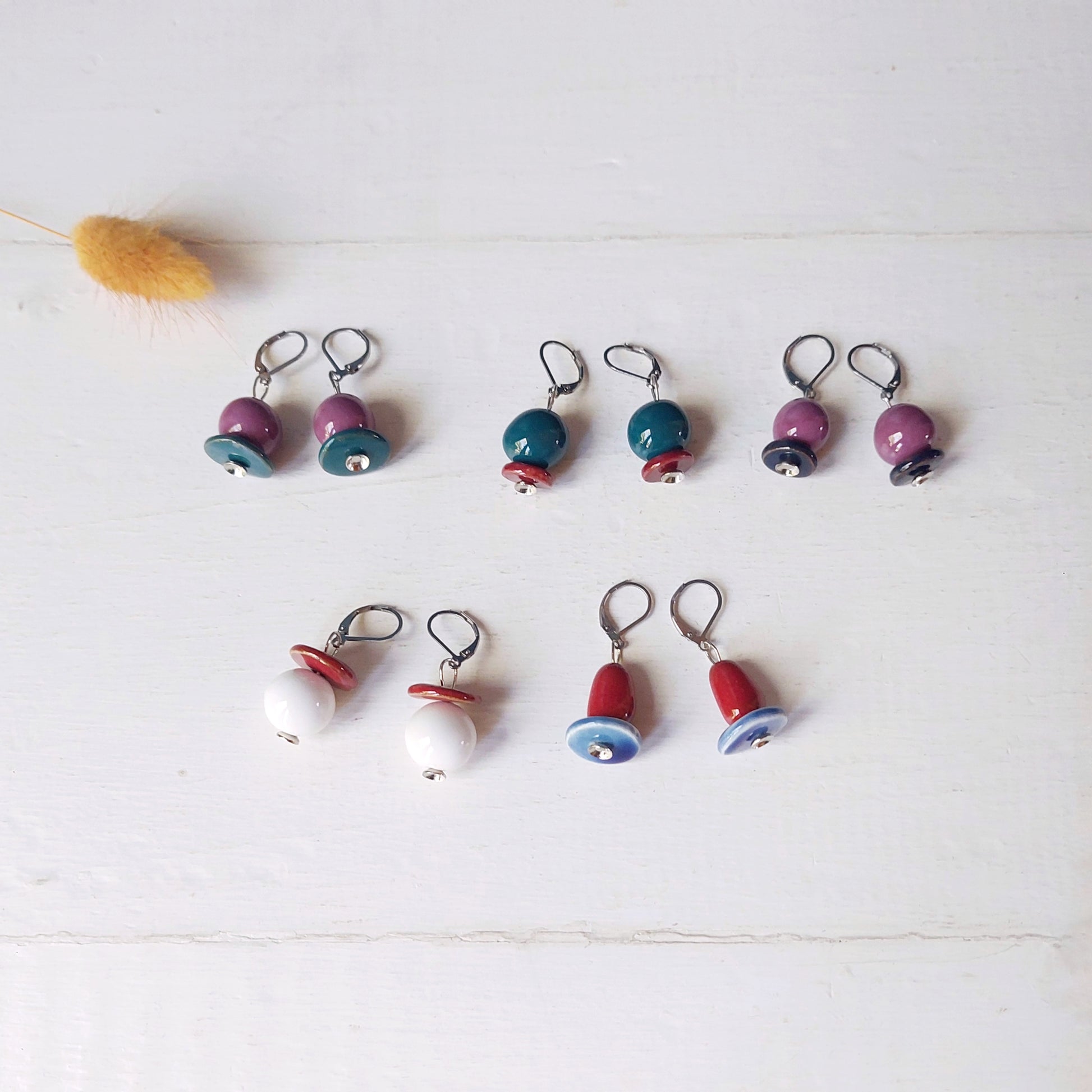 Orecchini Madame pendenti in ceramica bianca e rossa, in cinque varianti colori.